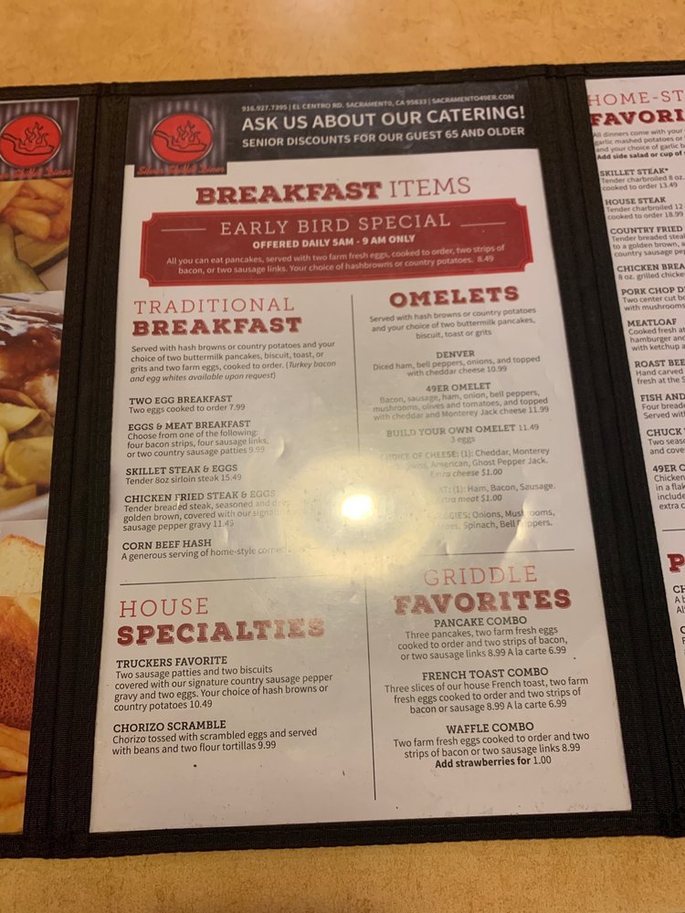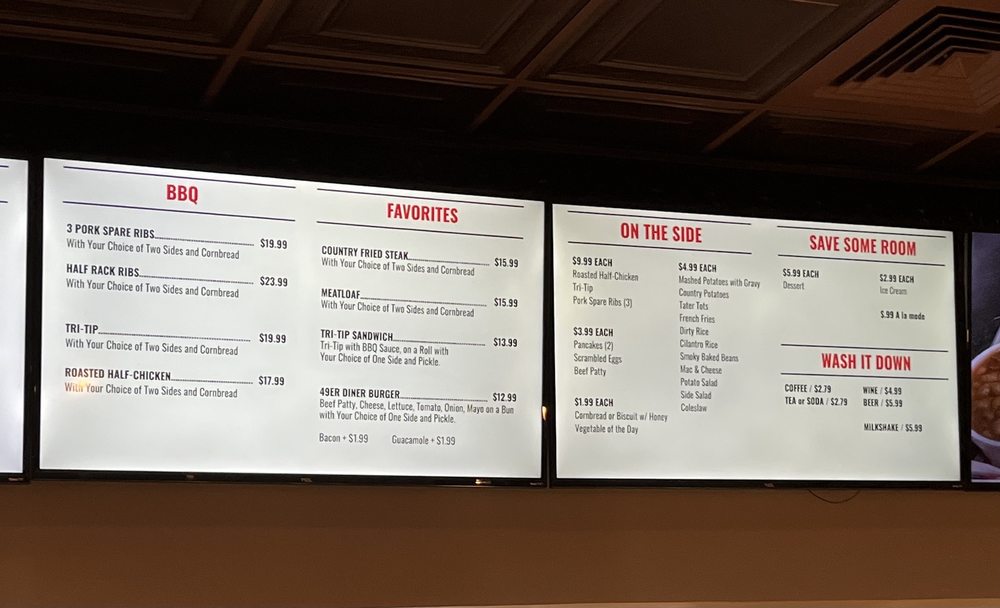 49er Diner at 2828 El Centro Rd in Sacramento, CA offers a variety of food options with a casual and friendly atmosphere. They provide delivery, takeout, reservations, and have many vegetarian options available. The diner is wheelchair accessible, accepts various payment methods including cryptocurrency, and offers outdoor seating for guests. Customers rave about the delicious tri tip sandwich, mac and cheese, burgers, and hearty breakfast options. The service is top-notch with servers like Monica receiving high praise for their friendly and efficient service. The menu also includes beer and wine options, catering services, and happy hour specials. Overall, 49er Diner is a great spot for delicious comfort food and a pleasant dining experience.